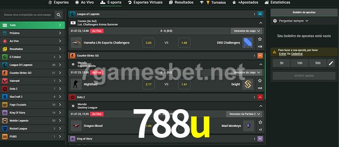 A aposta 788u oferece aos jogadores a experiência mais conveniente de apostas em eSports!